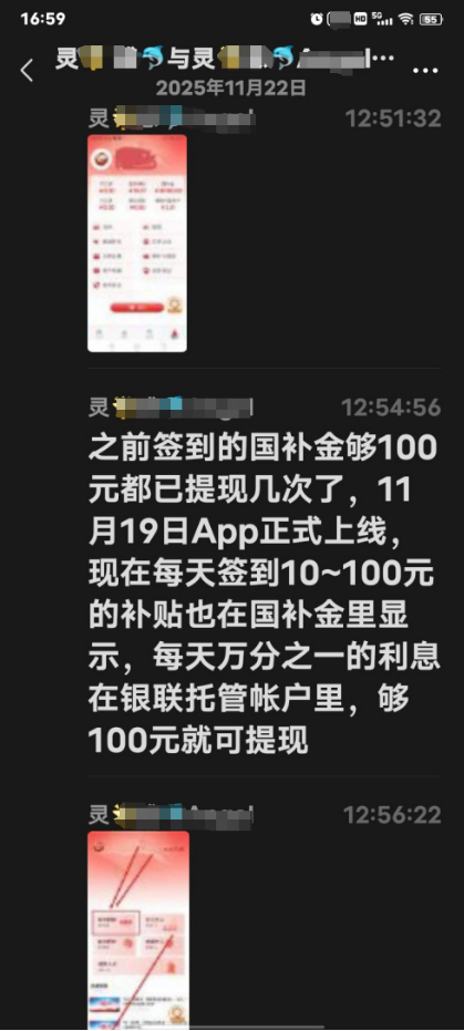他说,有个师兄在发放国家资金补贴,我只需要把身份证正反两面照片和支付宝账号发过去登记一下,每年就可领三万元资金补贴。