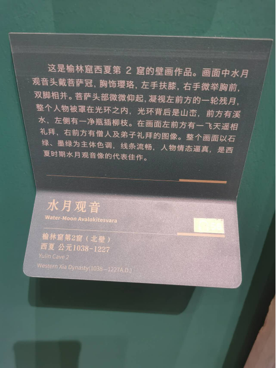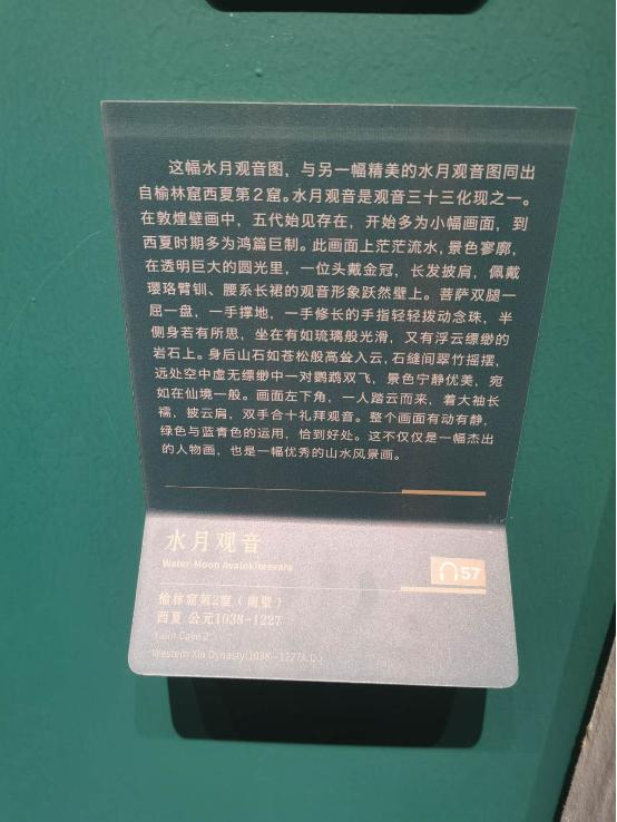 我特意上前看了展品的介绍,提到的菩萨是水月观音,记得老师也提到等自己75岁之后就是观世音菩萨了。那个档口,给我的冲击有点大,就是那种惊奇、欣喜、感动、膜拜的情愫在心里涌动。是的,是的,老师给我们说的每个字都是真实的,老师给我们说的法,不但可以通过佛教经典来证明,也可以通过千年以前的壁画来证明。即使在时间的长廊里流淌了千年以上,真实的永远都不会改变。本来无知愚昧的我即使在听法的过程中,也是懵懵懂懂的,如今在看到展品的那一刻,才体会到何为实相,何为实证,何为真实。如果老师说的这段法是真实的,那祂所说的天堂是真实的,祂所说的圣光宇宙是真实的,祂所说的能够救赎灵魂也是真实的。我们真的是一群福报最大的微生物,能够生在这个最伟大的时期,能够亲耳听闻一尊佛陀的谆谆教诲,能够直接得到在世如来的慈悲救赎,这个对于在苦海里轮回了无数世的灵魂来说,还有什么比这个更珍贵的呢?!