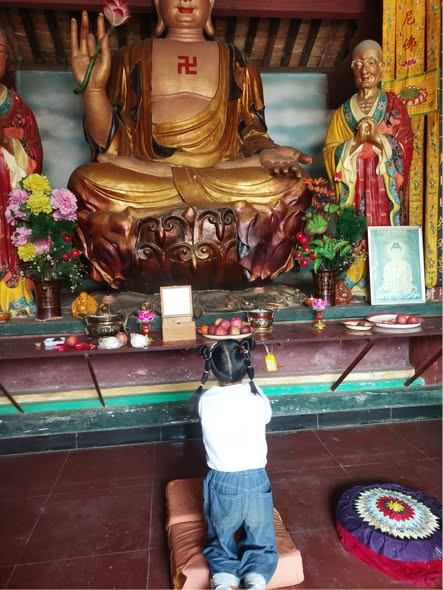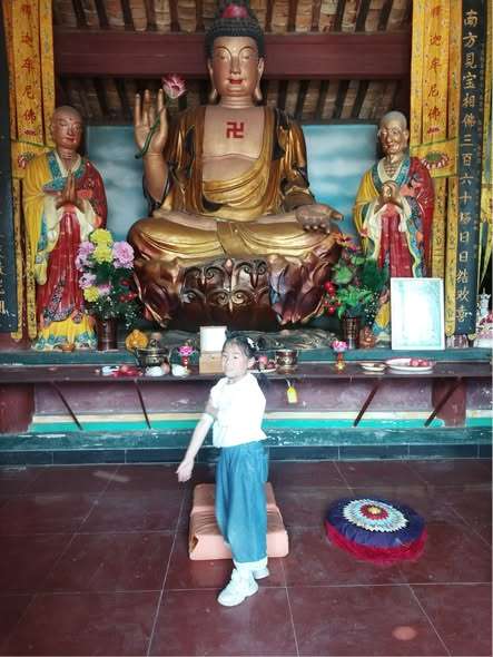 几分钟后小孙女惊慌地跑出来了,拉着我的手,说害怕,里面的佛像会动……