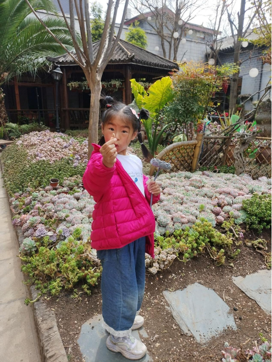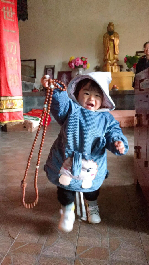 我们路过一个村子里的小寺院,一个省级的文物古迹,看见寺院开着门,才知道今天刚好是正月十五元宵节。就进去拜拜,我把莲花机交给大雄宝殿门口的义工拿着,和小孙女进去拜了佛,还给她拍了拜佛的照片,想拿给她妈妈看看。