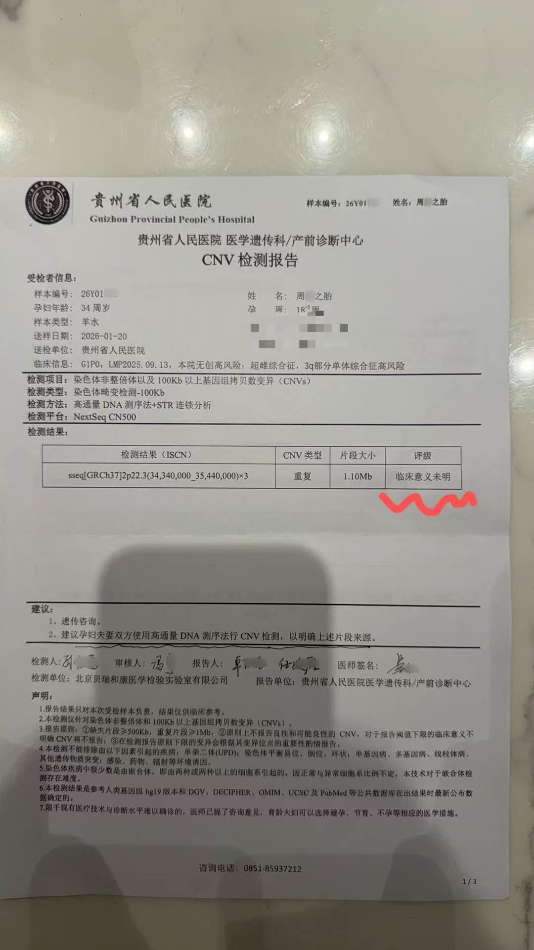 医生解读报告:“你这个基因片段重复,但重复的部分是空的,暂时没有什么问题,但是你们想要确定这个基因片段是父母给的还是小家伙自己带的可以继续做检查,不过就算是小家伙自己带的,也并没有什么临床经验证明这小家伙有什么特殊的。”