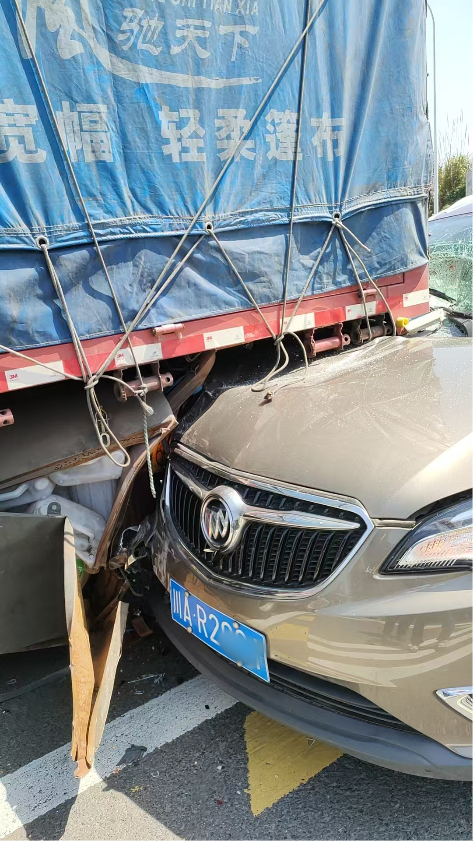 当意外发生瞬间,我似乎是个旁观者,清醒看着但又经历着,了知现场发生的一切:女儿猛甩方向,车子偏离车道,猛踩油门,车子高速窜向大货车,然后车头跟货车尾碰撞上,安全气囊弹开,挡风玻璃破裂,同时伴随巨响,恍惚那一刻时间放慢了一些,其实是一刹那间的事,当时心中居然没有一丝恐怖,是安宁的,像跟我无关似的。