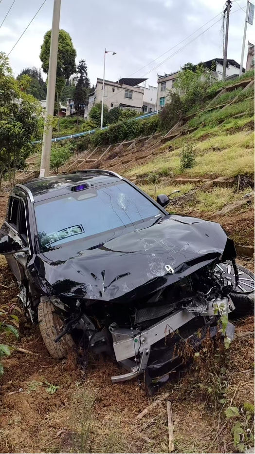 2026年4月11日,我和一个朋友去凤凰古城游玩后分开,我坐车回湖南永州,他开车回重庆。下午2点多钟,他的车在铜仁市江口县太平村发生重大交通事故,当时他是从高速口出去充电,车辆转弯时,速度太快失控,从几米高的路上直接冲下去,撞坏了电线杆和护栏,砸在草地上。