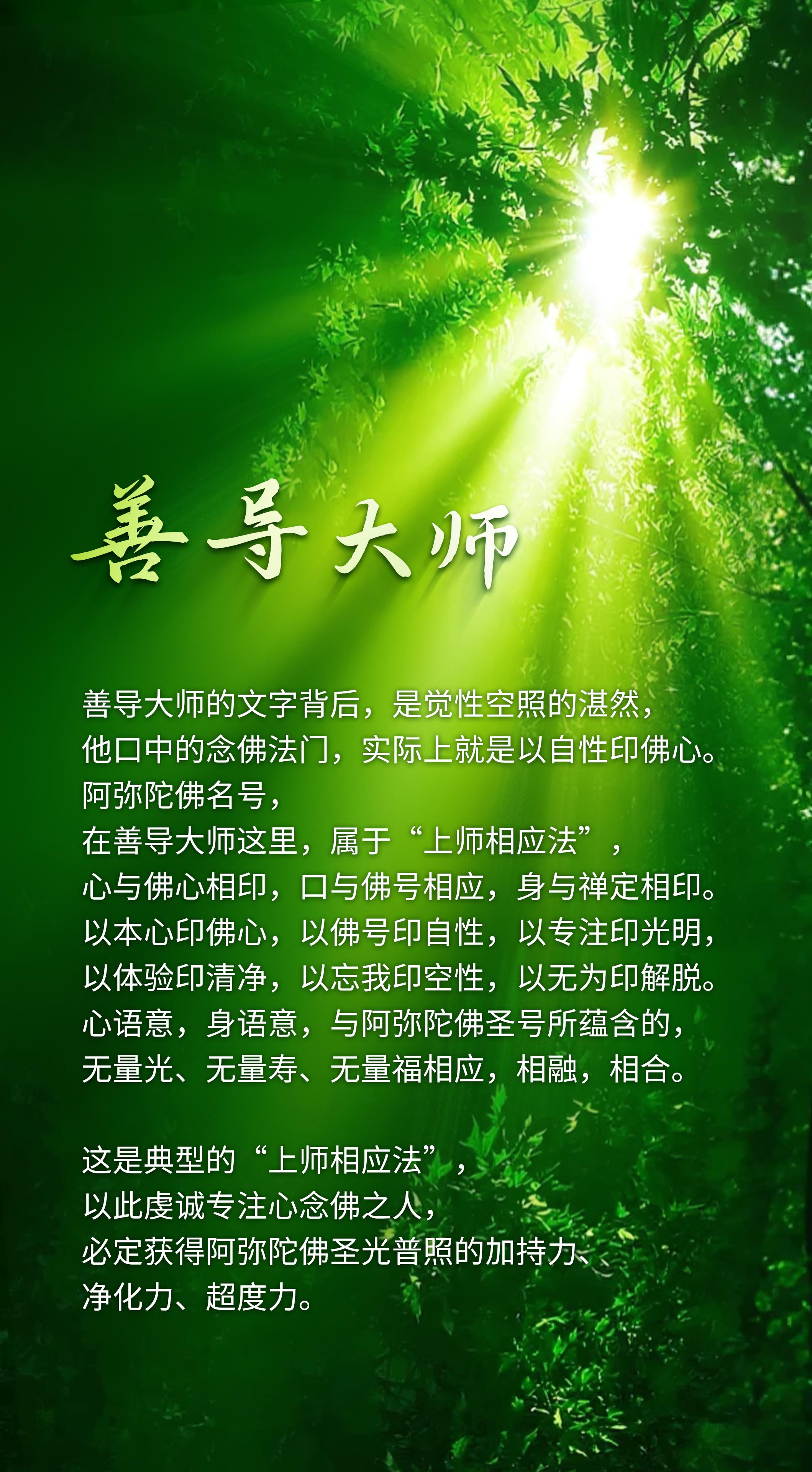阿弥陀佛名号,在善导大师这里,属于“上师相应法”,心与佛心相印,口与佛号相应,身与禅定相印。