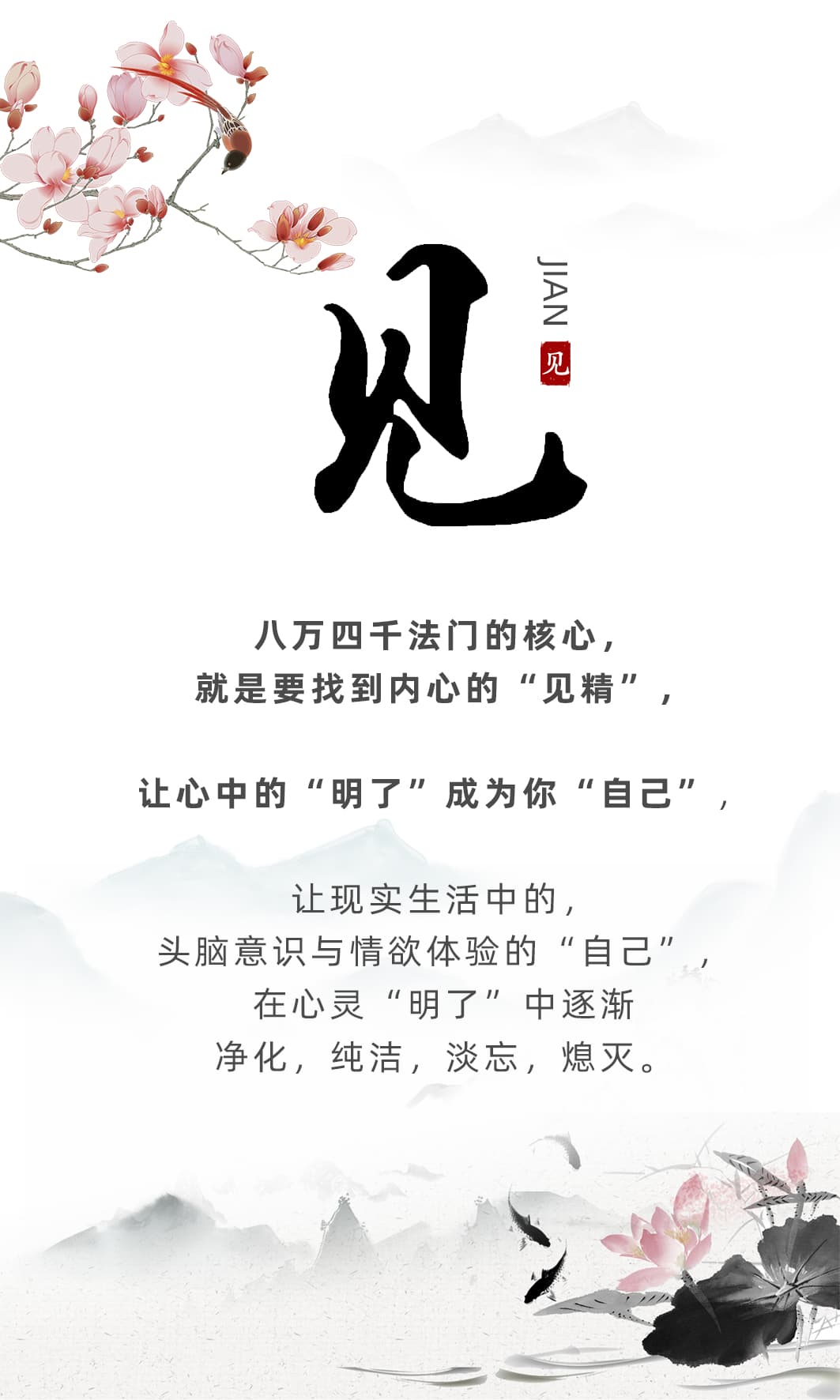 八万四千法门的核心,就是要找到内心的“见精”,让心中的“明了”成为你“自己”,让现实生活中的,头脑意识与情欲体验的“自己”,在心灵“明了”中逐渐净化,纯洁,淡忘,熄灭。