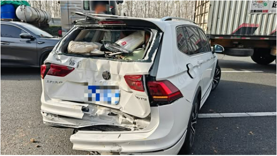 车门边上起了一点烟,我们才想起先下车。看到车尾的惨状(见图1),扫了一眼,竟然没有任何物品掉落,又觉得好神奇!转身看见后面被货车挤到的另一辆车(见图2),第一反应是:“我的老天,看起来好严重啊!车里的人在哪里,受伤了吗?!”然后看到一对夫妻走过来,男士只有手指破皮流了点血,女士毫发未损,只是有点受到惊吓。哇塞!我当时就感觉,老师真的真的真的在看护着每一个人!这么严重的情况竟然没有受伤!