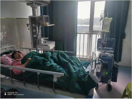我们一分钟都不敢耽误,转至最好的市人民医院。经检查被确诊为:急性前壁心肌梗死。三条主动脉分别堵了98%、95%、90%;心肌梗死指标肌钙蛋白结果达35064ng/ml;B型钠尿肽前体指标4162.97pg/ml;肌酸激酶指标3982U/L;双侧胸腔有积液。医生告知已经错过最佳溶栓和支架的治疗时间了。经主治医师的分析诊断,根据患者病情,明确表示只能选择保守治疗。当晚,医院两次下达了病危通知书。4月12日、13日,妻子的病情较为稳定,各项指标没有大的变化。