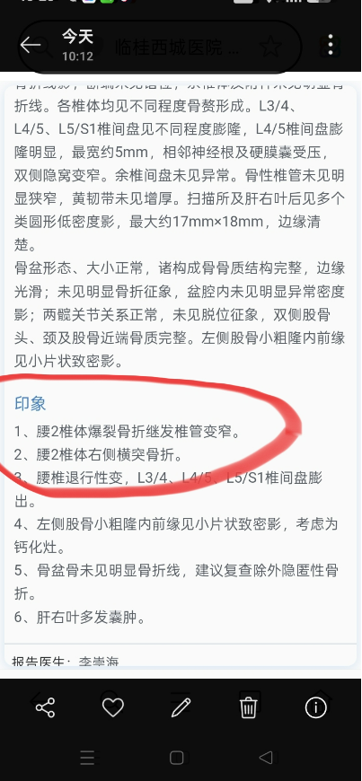 腰2椎体爆裂骨折(见图),三块碎片有一块差点掉入椎管,好在恩师加持进电梯的人与我都懂,而制止了别人对我的乱搬动,否则碎片跌入椎管就瘫痪了。