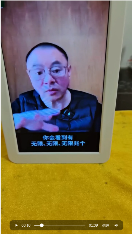 正月十三早上念完心咒,就打开手机看老师最新讲法视频《入胎经》,刚看不久就看到视频里放出七彩的光辉,光芒由老师头顶绽放,手一挥动,颜色就跟着发生变化。